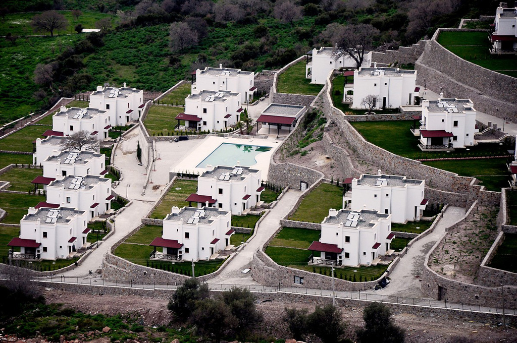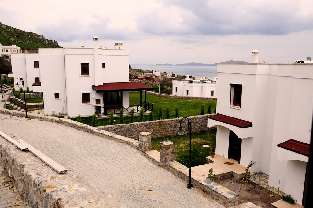 32.000 m² arsa içinde 21 adet ikiz, 6 adet tek dubleks villalı, yüzme havuzlu, sosyal tesisli site.
